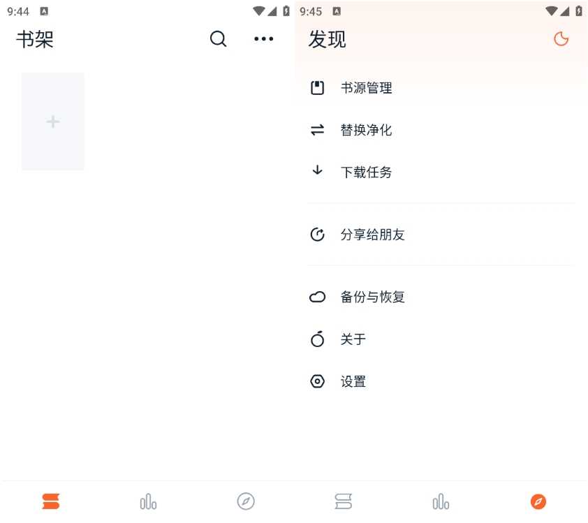 我們先簡單看看它的界面——初次打開時,書架里空空如也,這就需要我們自己去搜索查找內容了。