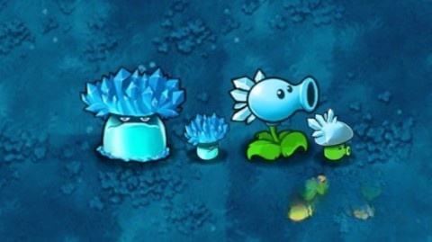 寒冰小蘑菇:當它觸碰到僵尸時,能將僵尸周邊的其他僵尸都凍結(jié)住。