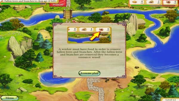工人得有食物才能清理倒下的樹木和樹枝,所以玩家每次完成對應的任務后,得回房屋補充食物。而且當玩家把倒下的樹砍斷、樹枝也清理掉后,這些東西就會變成資源——木頭!