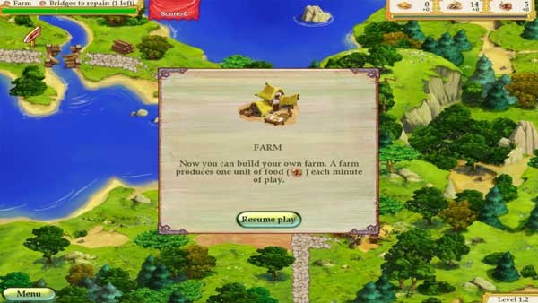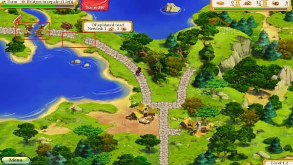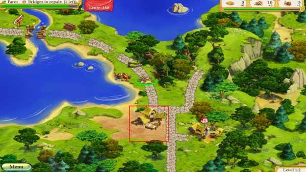 第二關的目標是打造專屬農場。由于糧食供應并非總能充足,建立自己的農場就顯得尤為必要。要注意,建造任何建筑物都離不開木材。農場建成后,需著手修復通往橋梁的道路以及橋梁本身。任務內容包括:建造指定建筑、修復農場橋梁。