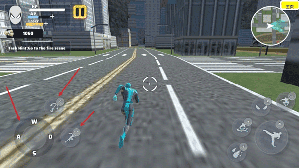 左側的虛擬搖桿用于控制角色的移動方向,其旁的按鈕能夠發射繩索并觸發加速滑行功能。巧妙運用這些操作,能助你在城市之間快速穿梭,顯著提高機動效率。