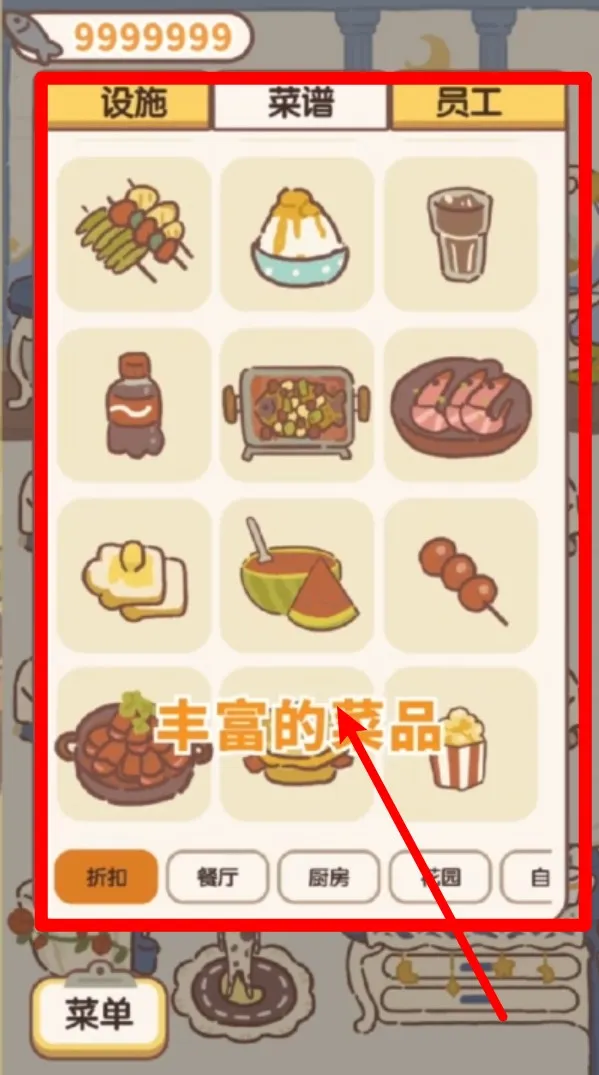1.點(diǎn)擊菜譜頁(yè)面可查看已解鎖的所有料理,圖文清晰便于管理上架,讓你靈活安排客人所需美食。