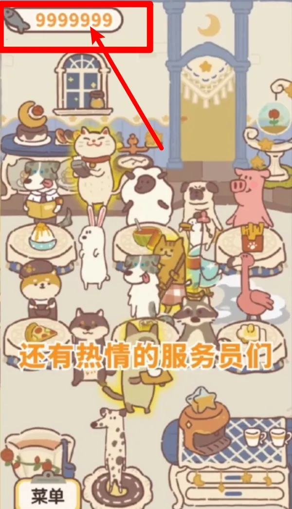 2.畫面左上角顯示的魚干數(shù)量為游戲貨幣,魚干可用于解鎖家具、雇傭員工與購(gòu)買裝飾資源。