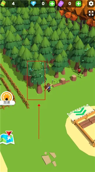 3、然后我們就需要去砍樹了,靠近一棵樹角色就自動揮砍