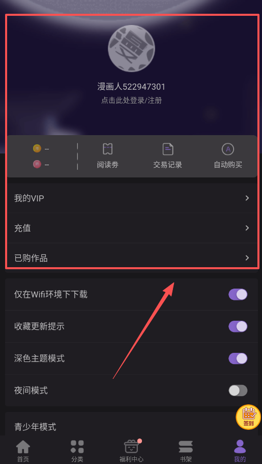 首先要搭建你的個人閱讀根據地,也就是完成登錄和初步配置,尤其要在“我的”頁面里開啟收藏更新提醒。