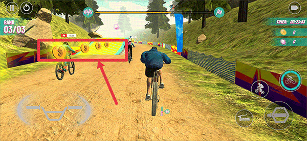 4、知道基礎操作方式后就可以正式開始游戲啦,在騎行時駕駛自行車通過加速道可以讓你的速度變得更快哦