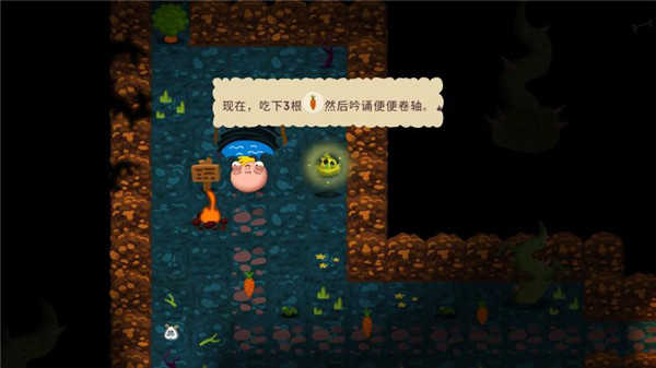4. 吃下三根胡蘿卜后,開始念誦卷軸來召喚你的伙伴。