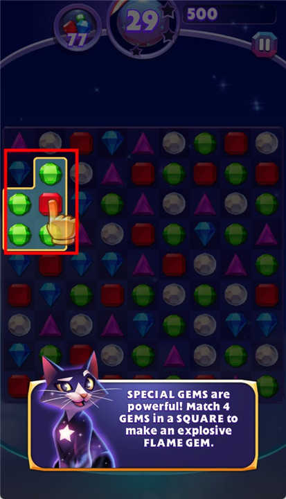 4、你也可以通過不同方向的寶石組合來完成消除。