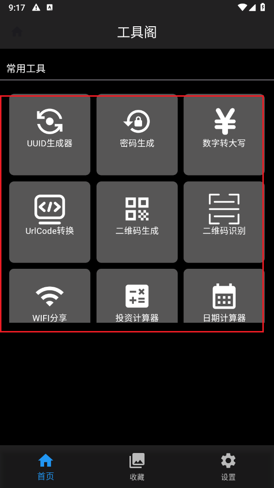 最后切換至收藏板塊,可以查看所收藏的工具。