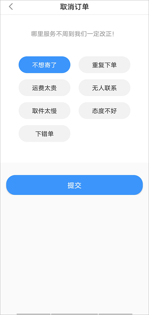 要是快遞員尚未上門取件,你可以在訂單頁面點擊“取消訂單”按鈕,接著挑選一個取消原因(具體依據實際情況來選),最后點擊提交,這樣就能順利取消訂單了。