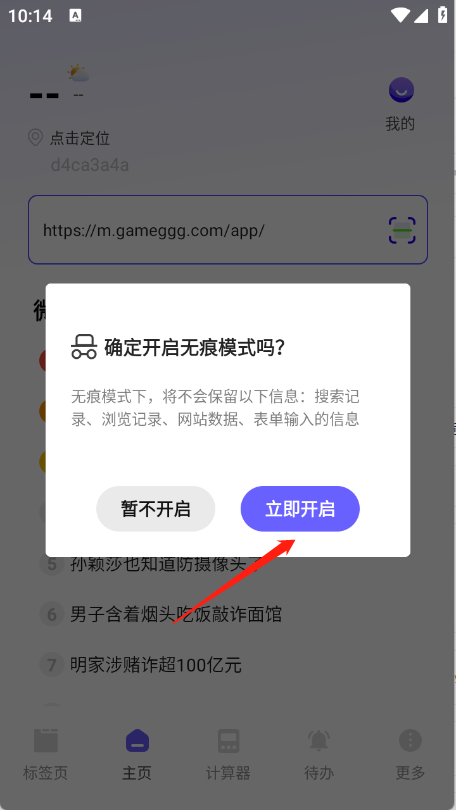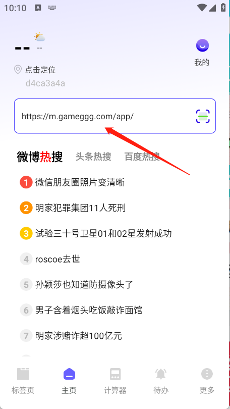 進入首頁后,在輸入框中輸入關鍵詞或網址并點擊搜索。