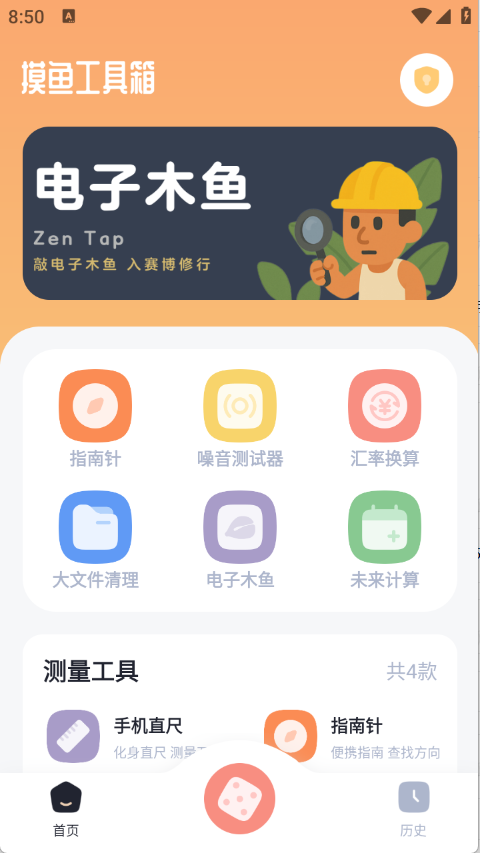 首頁頁面匯集了不少工具資源,像指南針、匯率換算還有電子木魚都包含在內。