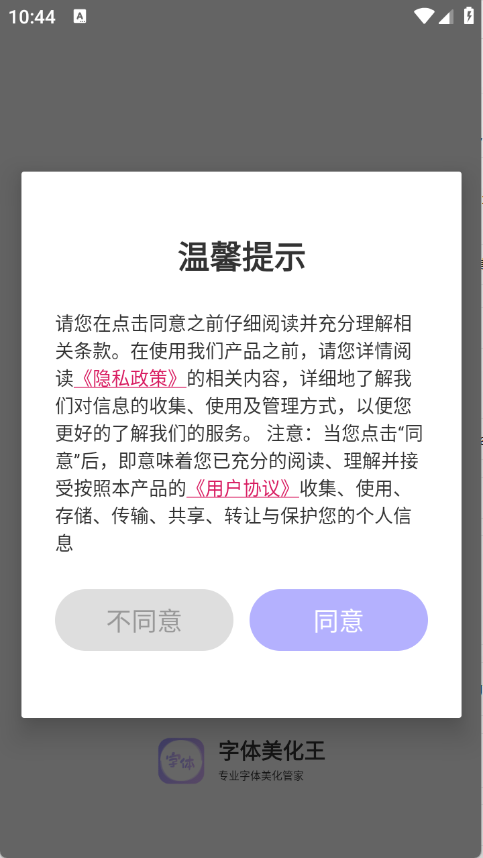 用戶首先需要在3G游戲網的字體美化王中,查看并同意隱私政策和用戶協議。