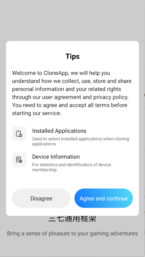 點擊同意軟件相關的協議政策,隨后進入游戲主頁面。