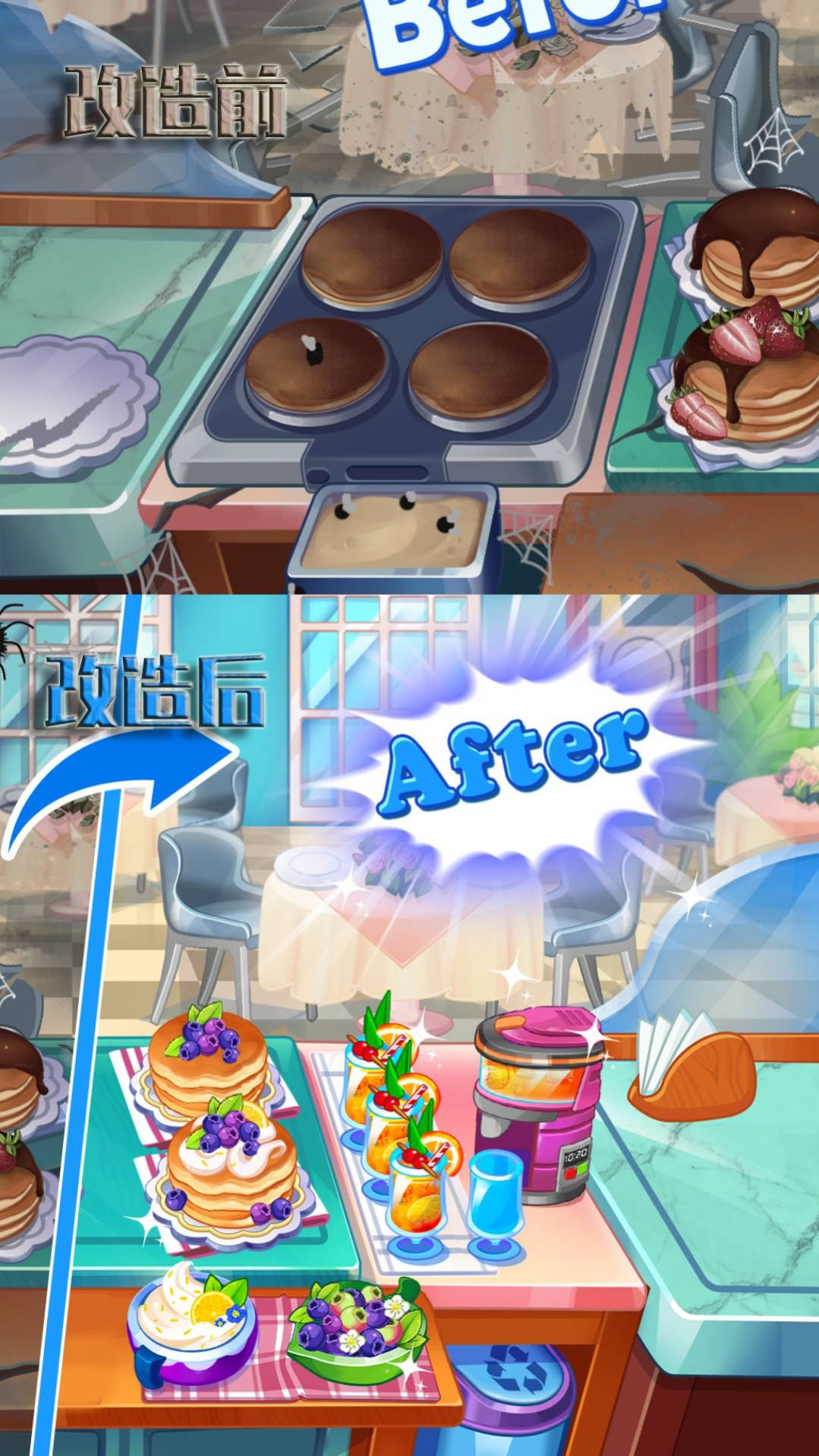 自由度高:游戲里餐廳的裝修風格、菜品的組合搭配以及員工的招聘任用等事項,均由玩家自主決策,玩家能夠依據自身的偏好和經營思路來開展運營。