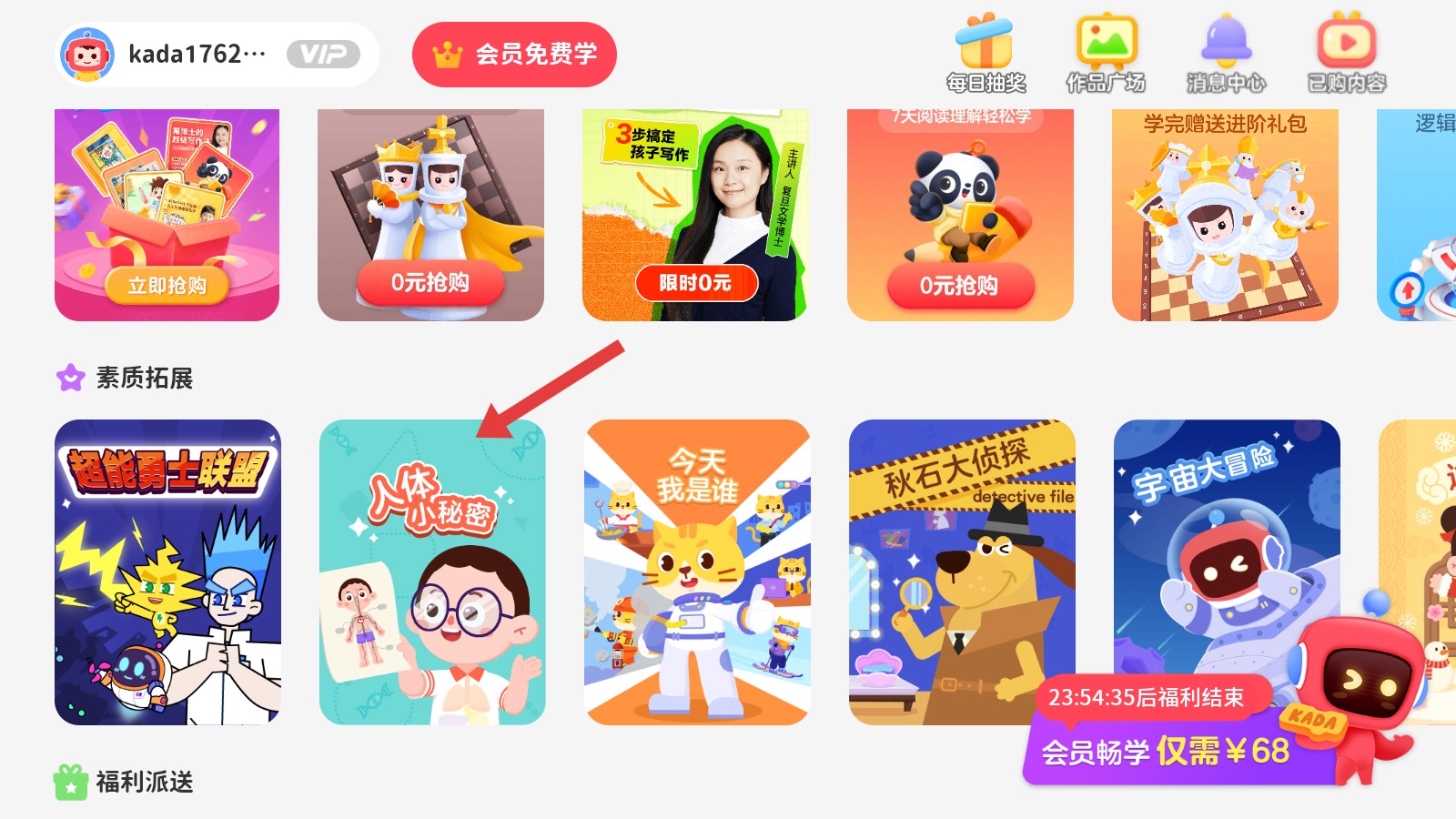 接著在【素質拓展】板塊里,挑選【人體小秘密】這類趣味內容,就能開啟素質拓展的學習之旅啦。