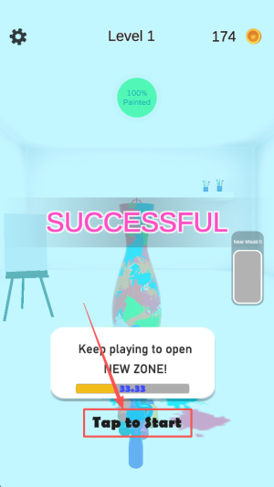 完成后點擊“Tap to start”進入新區域,持續游玩可解鎖更多關卡。