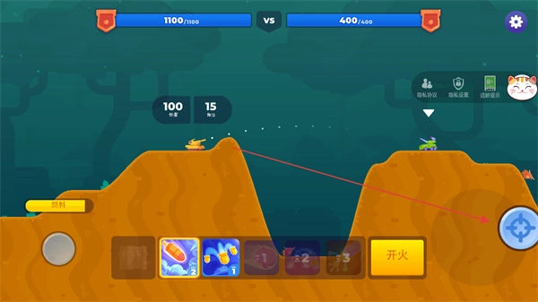 點(diǎn)擊開火按鈕發(fā)射炮彈,攻擊敵方坦克,逐步消耗其血量。