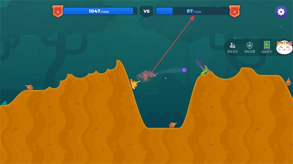 射擊嚴(yán)格遵循物理拋物線原理,需結(jié)合距離、風(fēng)速、地形高度差精準(zhǔn)調(diào)整力度與角度,每一次射擊都充滿策略性與挑戰(zhàn)性,告別單一化的無(wú)腦攻擊模式。