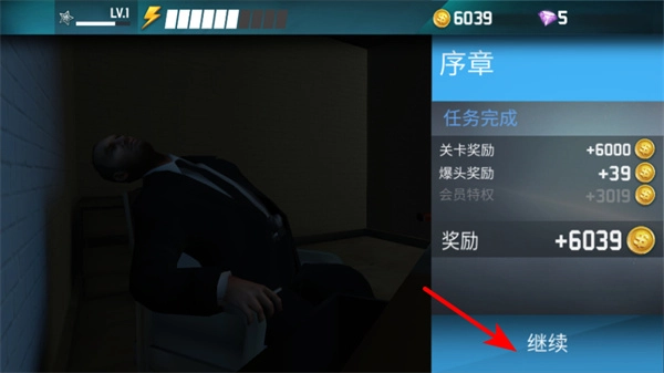 完成任務后,點擊“繼續”按鈕就能進入下一關。在繼續之前,你可以先查看本關卡的獎勵,這些獎勵可以用來提升武器性能和角色的能力。