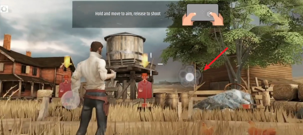 接下來,拖動屏幕右側區域就能調出左輪彈匣的瞄準按鈕,點擊屏幕就能完成射擊。