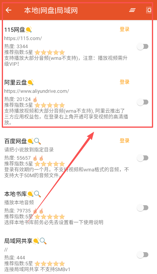 源管理支持多種網盤選項,每個源都配備熱度評級與使用指引,可依據文件類型挑選適配的存儲平臺。
