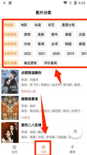 進(jìn)入分類(lèi)頁(yè)面后,能夠依據(jù)影片類(lèi)型、上映年份等多種條件對(duì)影片進(jìn)行篩選。