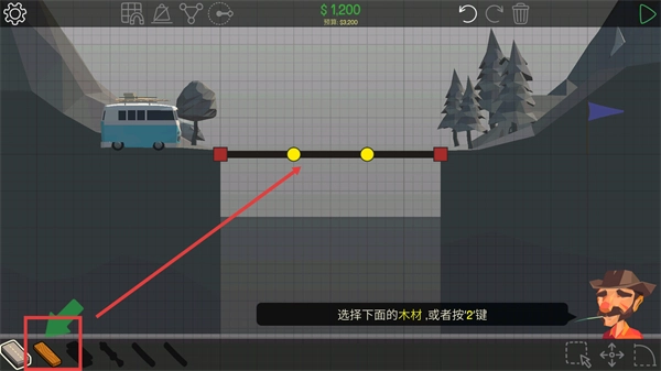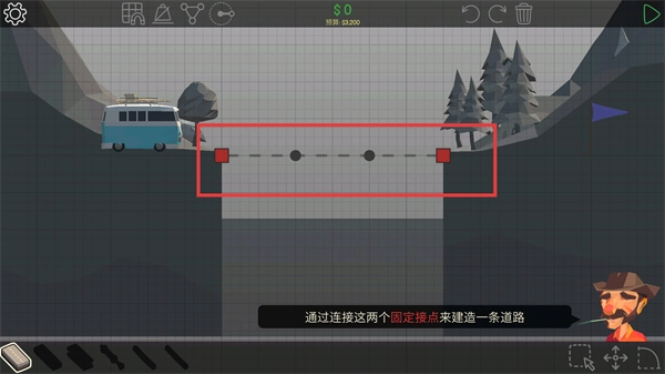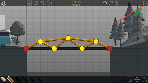 在規劃環節,造橋模擬器會展示簡潔的2D界面。您需要在此挑選最合適的建橋材料,搭建出韌性最強的結構。