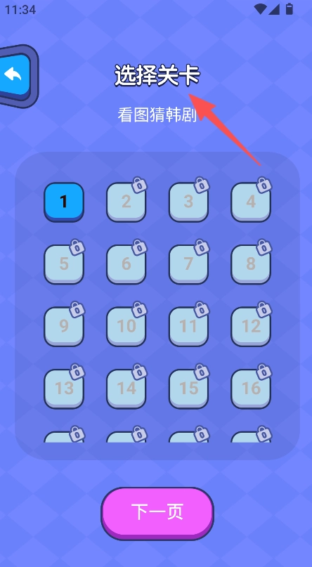 這款游戲以看圖猜韓劇作為核心玩法,設(shè)置了關(guān)卡系統(tǒng),初始關(guān)卡解鎖后后續(xù)關(guān)卡處于鎖定狀態(tài),以此來適配休閑游戲的闖關(guān)體驗需求。