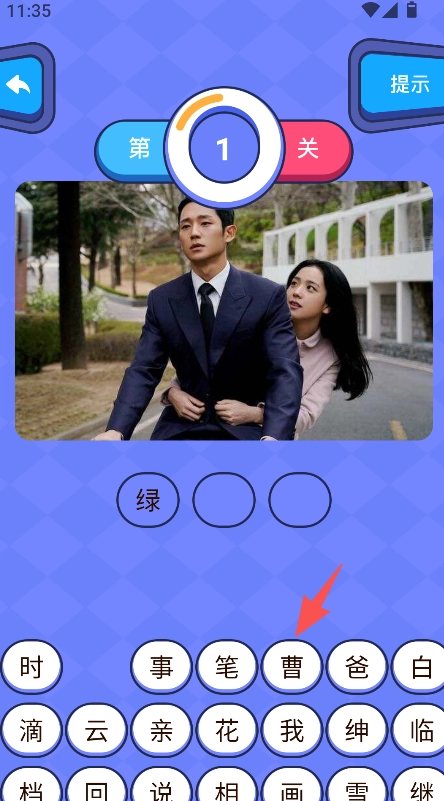 支持看圖猜劇互動功能,根據(jù)關(guān)卡內(nèi)的影視圖片,從漢字選項中選擇字符。