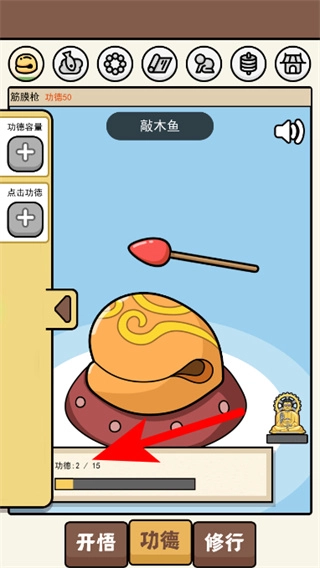 持續點擊木魚完成操作后,可查看下方進度條顯示的當前功德值。