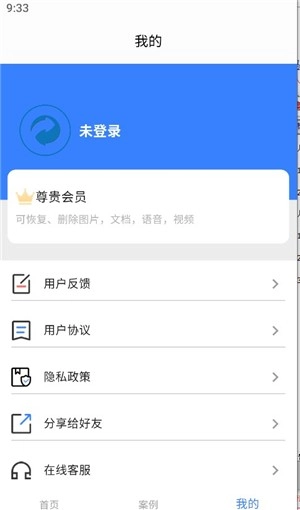 在個人界面中,你可以進行查看隱私政策、反饋問題、聯系客服等操作,還能完成登錄和開通會員的設置。