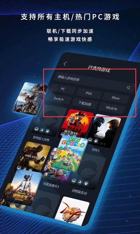 在已支持的游戲界面里,你可以借助輸入框搜索游戲,也能按照【PC】【PS4】這類類別來(lái)查找游戲。