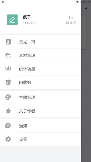 另外,點擊作品左側的“三”字圖標,可在此處進行靈感記錄、素材管理、統計以及主題管理等操作,詳細的菜單欄如圖所示。