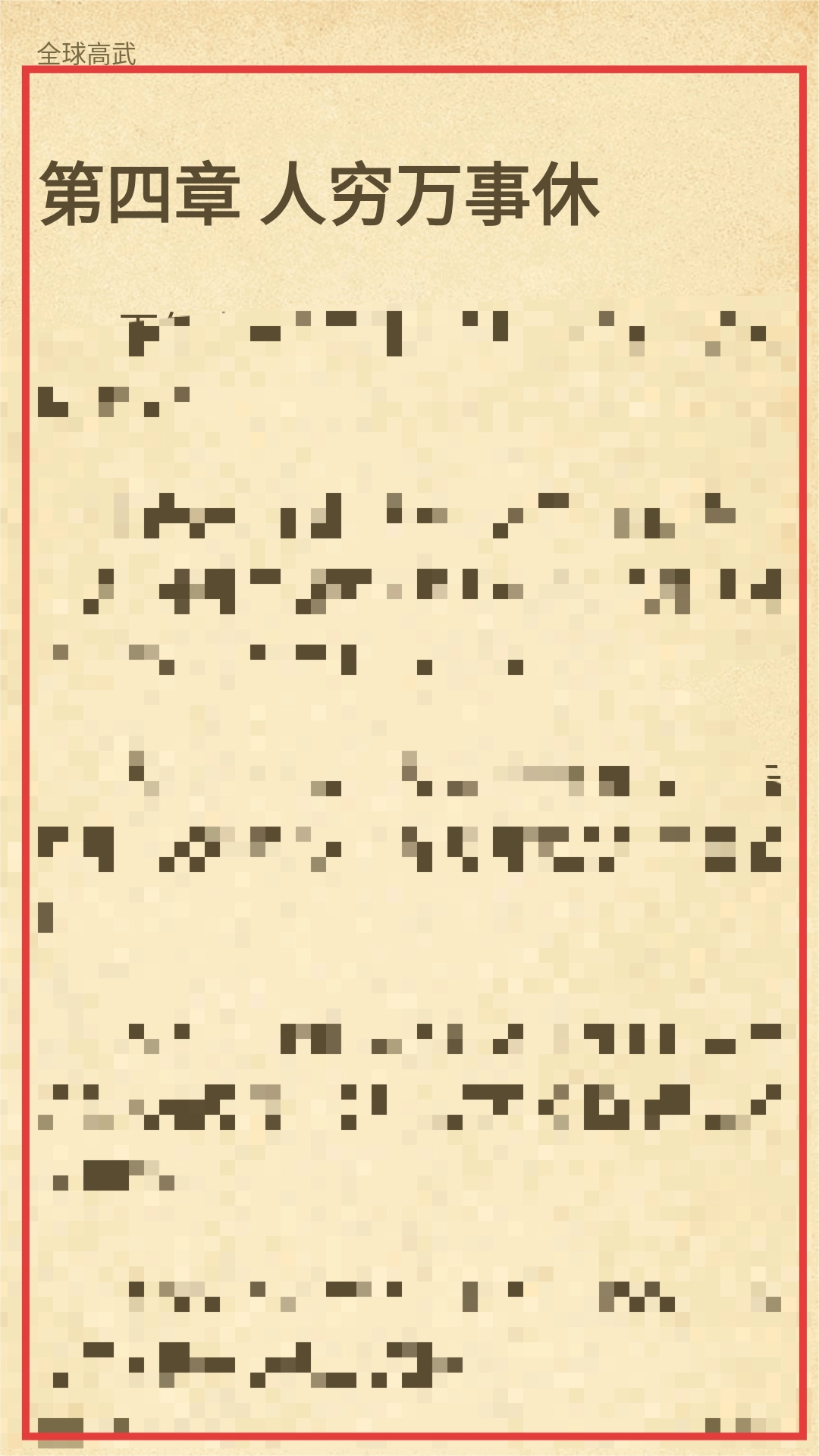 在目錄頁(yè)面選擇章節(jié),比如【第四章人窮萬(wàn)事休】,點(diǎn)擊就能進(jìn)入章節(jié)閱讀界面啦。