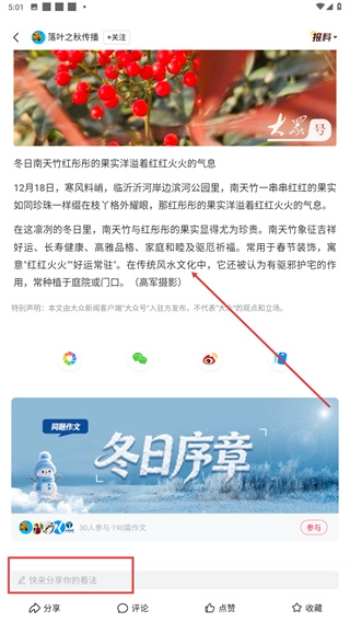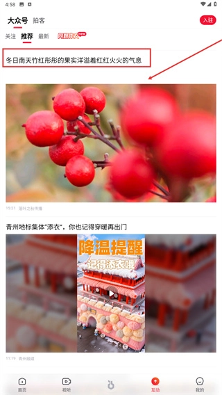 在【大眾號】頁面瀏覽推薦資訊,像冬日紅漿果這類生活圖文,能輕松獲取實用又有趣的信息。