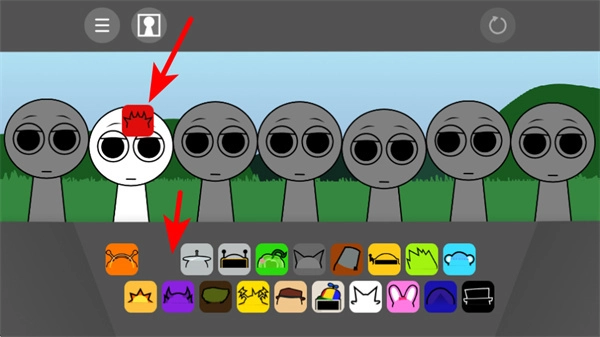 繼續點擊紅色箭頭所指的裝扮道具(比如灰色頭飾),給隊列里的下一個角色佩戴裝飾,以此推進整個隊列的裝扮進度。
