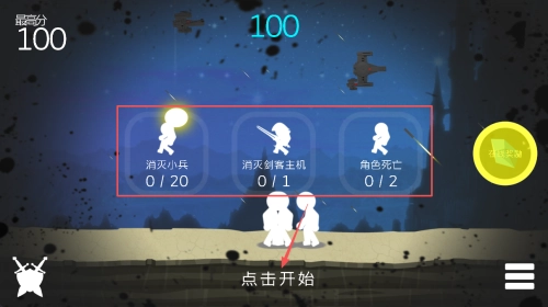 完成關(guān)卡的規(guī)則是:在把所有敵人都消滅之后,點擊“點擊開始”這個按鈕,這樣就能結(jié)束當(dāng)前正在進行的關(guān)卡,并且自動進入到下一個關(guān)卡。