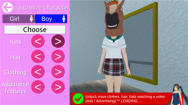 選擇各種造型,打造你的高中生角色