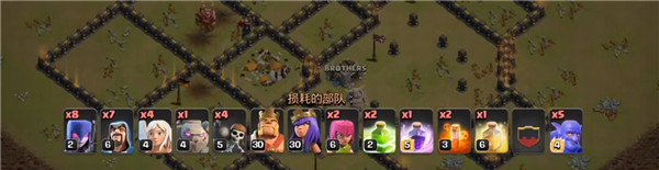 和胖法豬流派的玩法差不多,核心思路是先用其他兵種清理掉一部分防御建筑,最后再讓野豬騎士深入敵陣發起進攻。因為外圍的建筑基本都被清理干凈了,野豬騎士就能輕松在陣型中心發揮實力。需要特別注意的是,玩野豬騎士流一定要帶一到兩瓶治療藥水,畢竟野豬騎士一旦扎堆,巨型炸彈對它們的威脅實在太大了。