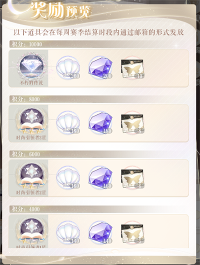 達到不同的段位,在每周賽季結算時還能獲取豐厚的段位獎勵,搭配賽每周一0點結算,會依據小主當前的段位排名發放相應獎勵。