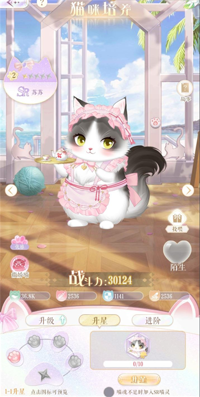 貓咪的養成主要有升級、升星和進階三種途徑,這些方式都能幫助提升戰力。其中升級需要消耗喵幣,而喵幣可以通過小鎮經營和為貓咪演出應援來獲取。