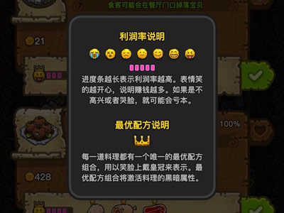 出發前記得點一下[開始探險]左邊的按鈕,看看圖鑒,確認下當前地圖里怪物的組合形態。要是探險途中忘了也不用慌,捕捉怪物時點擊右上角的圖案,就能隨時查看這只怪物的具體形狀啦。餐廳滿意度千萬不能低于60!可以只做顏值高的單一菜品,確保滿意度趨勢保持正數。只要滿意度趨勢是正的,預估收益當然是越高越好。要是黑暗料理王的餐廳庫存滿了該怎么處理呢?一種情況可能是長時間沒上線,顧客都走光了,這時候就先把鍋停掉,等一會兒再繼續做菜;另一種可能是顧客滿意度低于60%,導致菜品賣不出去或者賣得慢,庫存就堆積起來了,這種情況下,只能留一個鍋做飯團提升滿意度,其他的鍋先拿去升級吧!