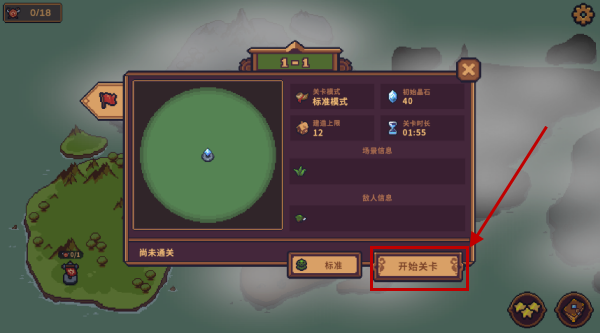 然后我們就可以點擊屏幕中的開始關卡進行游玩了。