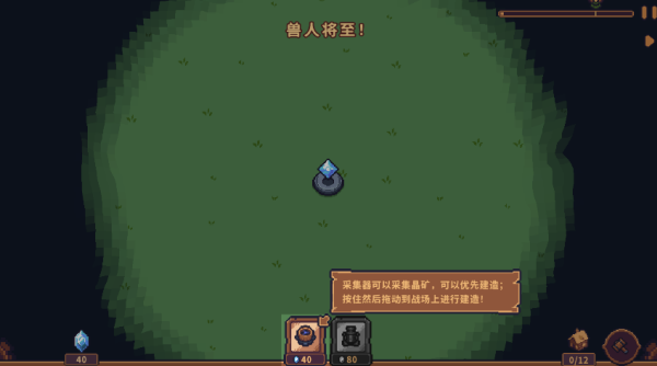 進入游戲后,第一步我們得建造采集器,用它來收集晶礦。
