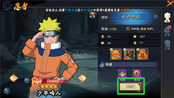提升忍者等級能夠快速增強攻擊、速度、防御等各項屬性。