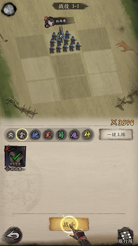 回合制硬核策略玩法:融入兵種克制機制、陣法站位系統(例如八卦陣、鋒矢陣等經典陣法)以及名將羈絆效果(像桃園結義組合可提升暴擊率),需要玩家依據敵方陣容靈活調整戰術策略,以此增強戰斗的策略深度。