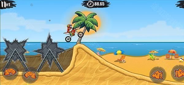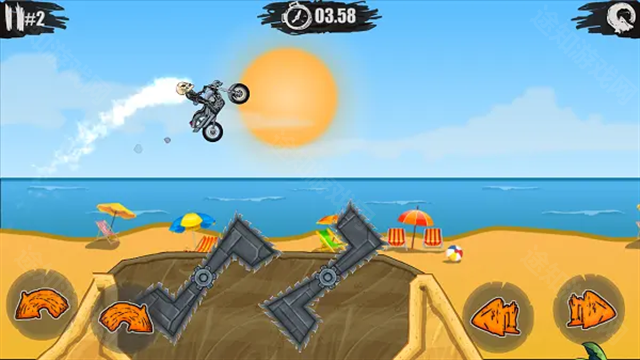 玩家需要借助加速與控制車輛翹頭這兩個按鈕,克服重重障礙。