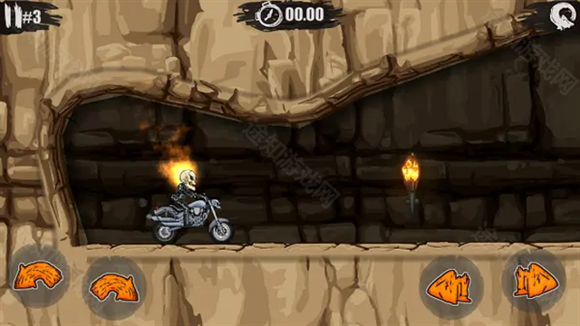 進入游戲后,界面右下角的兩個按鈕,分別用于控制摩托車的前進和后退。