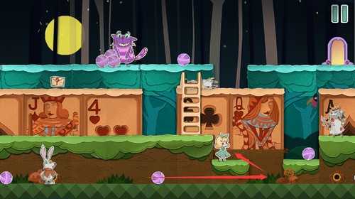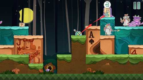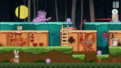 撲克兵會被球砸暈,你得趁著球的間隙快速移動到右上角的門里。